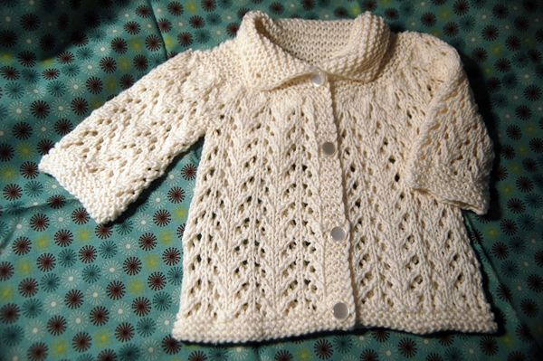 It’s been a while since my last update, but I am still knitting! I have done lots and lots of doll dresses (which I still love doing, even after 20+ of them), and lately I’ve been making baby sweaters. A few months ago, I found out that three of my friends at work are expecting! So of course I had to take the opportunity to take on some knitting projects.