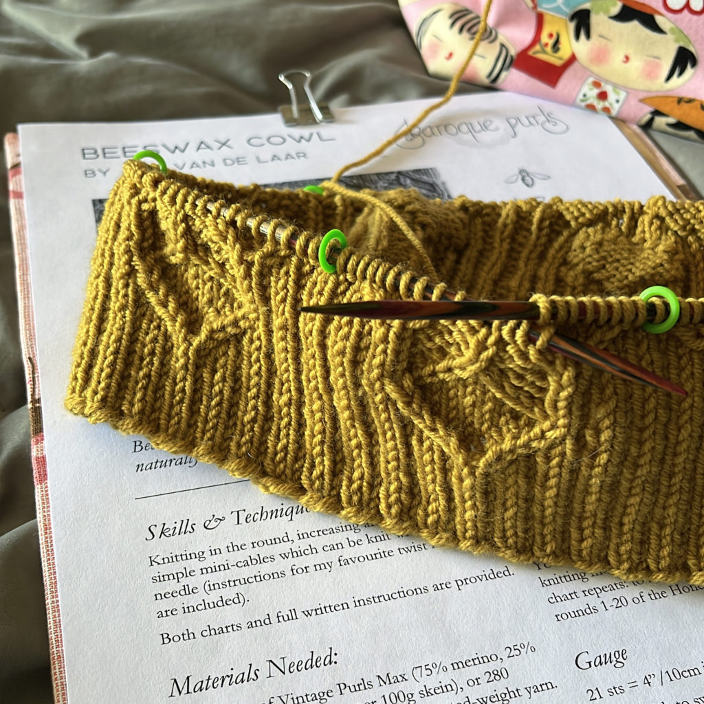 One of my favorite projects this year is the Beeswax Cowl by Amy van de Laar. Such a gorgeous pattern and great practice in using the cable needle. I love the pattern so much I made two cowls 😍 Yarn used is Lion Brand LB Collection Superwash Merino in Dijon. I bought a lot of it sometime ago and it’s one of my favorites to knit with. I also found the perfect accessory on Etsy – a honeybee pin.