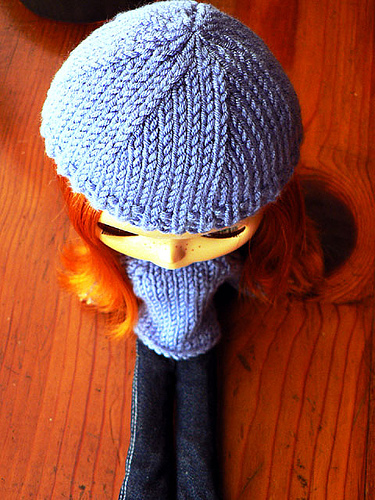Knitting for dolls was naturally what I did first, because doll size just seems so much easier to handle. And you don’t need too much yarn, either, even though Blythe has quite a large head 🙂