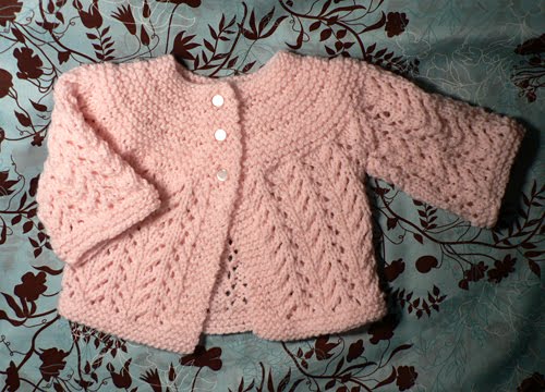Ah, I finally figured out EZ’s pattern and finished my second February Baby Sweater! The second time was definitely easier than the first. I guess I was too excited and didn’t read the pattern correctly the first time and made the increases around the collar too soon. The second time around, everything started to look right. Yay! I love this pattern so much!