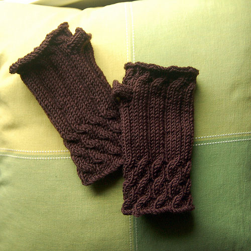 I still wanted a pair for myself, so I used the one skein of Debbie Bliss Rialto DK I had in my stash and knitted them up on size 5 needles. Perfect for my small hands!