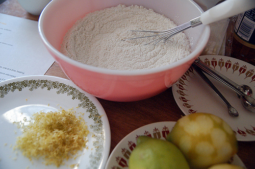 The dry ingredients. I use a my trusty Microplane Grater/Zester for the lemon zest.