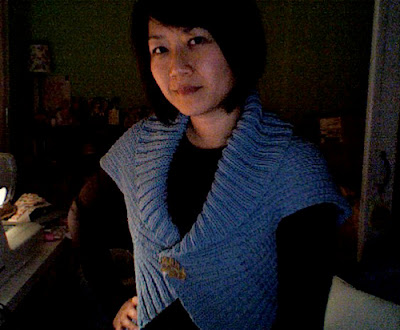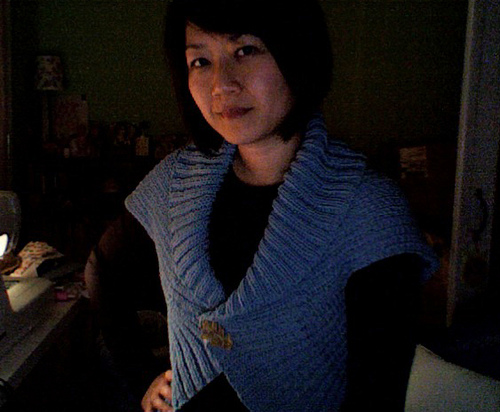 This was a super-easy pattern but stitching it together was a pain in the butt because I found the pattern illustrations really confusing. Plus I think it’s too big on me >_< Oh well, it’s really nice & cozy though, and I love Cotton-Ease!