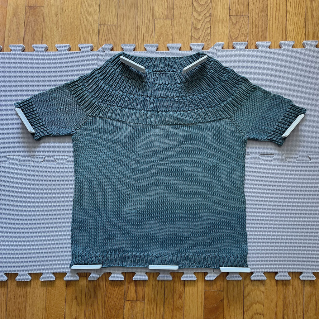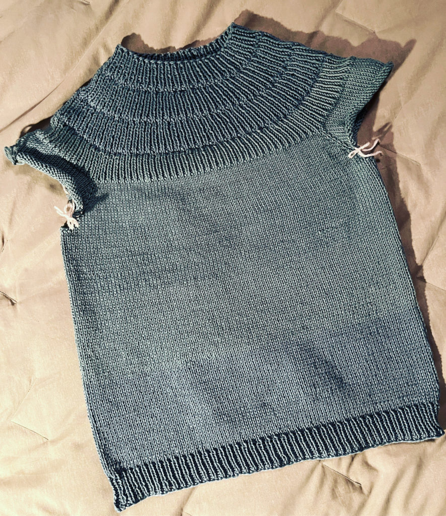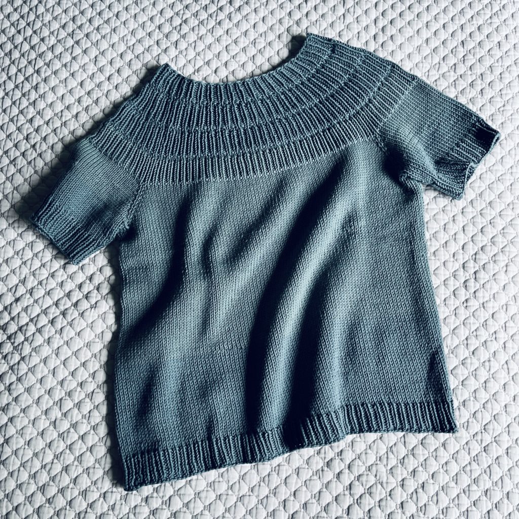 Been slowly trying to get to my yarn stash this year, and one project I’ve been wanting to get to is the Anker’s Summer Shirt by PetitKnit. I had just the perfect yarn for it, too – Jo Sharp Soho Summer DK Cotton I’ve had forever and ever. For a 100% cotton yarn, it is SO nice to work with. Subtle sheen and beautiful stitch definition which worked out wonderfully for the ribbed yoke.