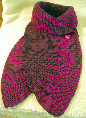 I saw this scarf in the Winter 2009 Lion Brand catalog and knew I had to make it for my friend Winnie. The colors of the yarn used (Lion Brand’s LB Collection Superwash Merino in mulberry & mahogany) are so fantastic together!