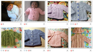 | My February Baby Sweaters. L-R from top: gifted to Weaver, Adelle, Ellis, Jake, Leonard, Averie, Evie, and Angela |